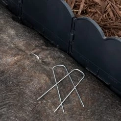 EasyFlex 10 in. Anchoring Stakes are made from heavy duty composite nylon plastic, designed to anchor black Pound-In Landscape Edging or 2-in-1 Landscape Edging. These heavy duty nylon stakes are suitable for many outdoor anchoring applications, including anchoring tents or stabilizing yard ornaments. The specially designed rectangular stakes alleviate frustration from future re-installations. The flat shaft assures the stakes lay flat against edging for a tight fit, the flat head is an easy target and strong enough to withstand a rubber mallet, and a pointed end easily pierces through landscape fabric and into the ground. Suitable for most soil types, the super-strong nylon construction is able to be pounded into the ground, even in clay or rocky soil. Whether securing landscape edging, yard ornaments, inflatables, or a tent, EasyFlex Nylon Stakes will keep your outdoor projects in place. In addition to securing weed fabric at garden edges, you can use the non-corrosive nylon stakes to secure the inflatable yard decorations, some solar lighting products, camping tarps and tents, and much more. EasyFlex Nylon Anchoring Stakes will not corrode and can be reused multiple times. (10) black 10 in. nylon stakes are included per package.